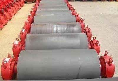 改向滾筒可用于輸送帶180°、90°或<45°的方向改變。一般布置在尾部的改向滾筒或垂直重錘式的張緊滾筒使輸送帶改向180°,垂直重錘張緊裝置上方滾筒改向90°,而改向45°以下一般用于增加輸送帶與傳動滾筒間的圍包角。