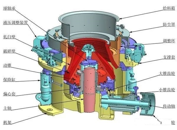 液壓圓錐破碎機(jī)異常振動(dòng)主要可能是因?yàn)槌?fù)荷運(yùn)行或機(jī)體故障導(dǎo)致:
