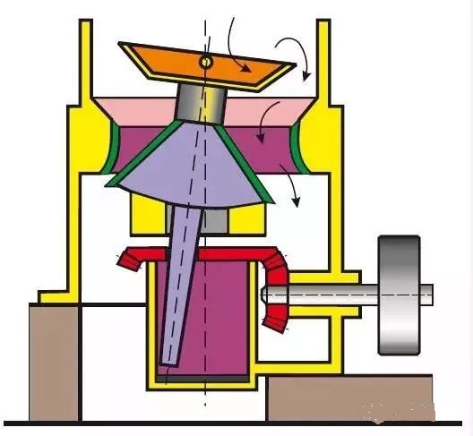 對小、中型圓錐破來說,物料從給料設(shè)備下落到進(jìn)料口的最大適宜高度在0.9米左右。若給料高度過大,石料容易高速“沖”進(jìn)破碎腔,對破碎機(jī)造成沖擊載荷,破碎力或功率超出設(shè)計(jì)上限。